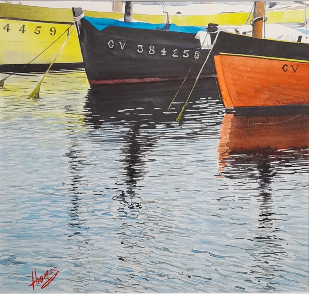 Dans le port de Sète 40x50 250€ Aquarelle très colorée de Dominique Thomas